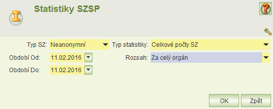 Pro neanonymní SZ je k dispozici jen statistika: Celkové počty SZ.