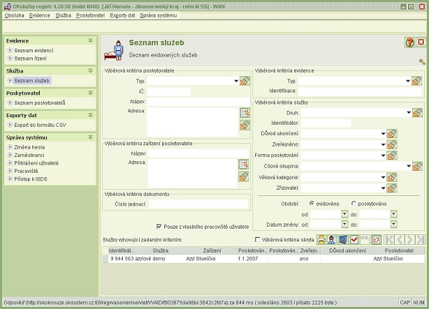slouží k vyhledání konkrétní sociální služby podle požadovaných výběrových